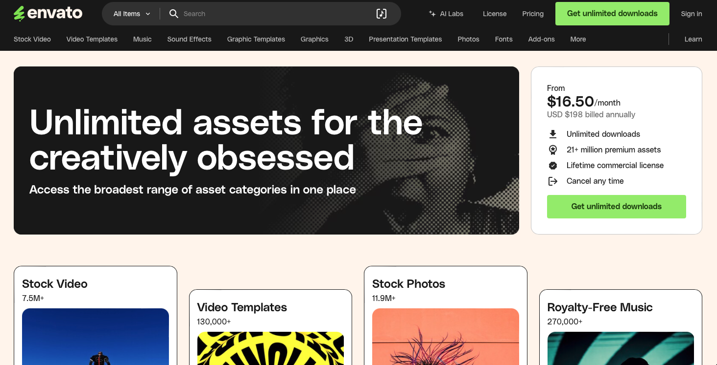 Envato gives designers instant access to millions of premium assets plus AI tools that generate exactly what you need when stock resources fall short.