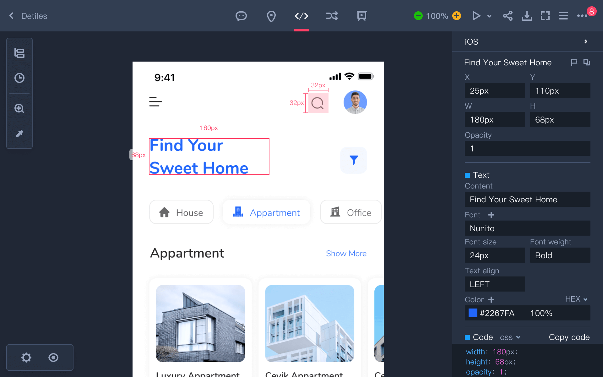 Generate CSS codes automatically. Developers can copy them to use in code. It can save a lot of time when developers are translating design elements into a web application.