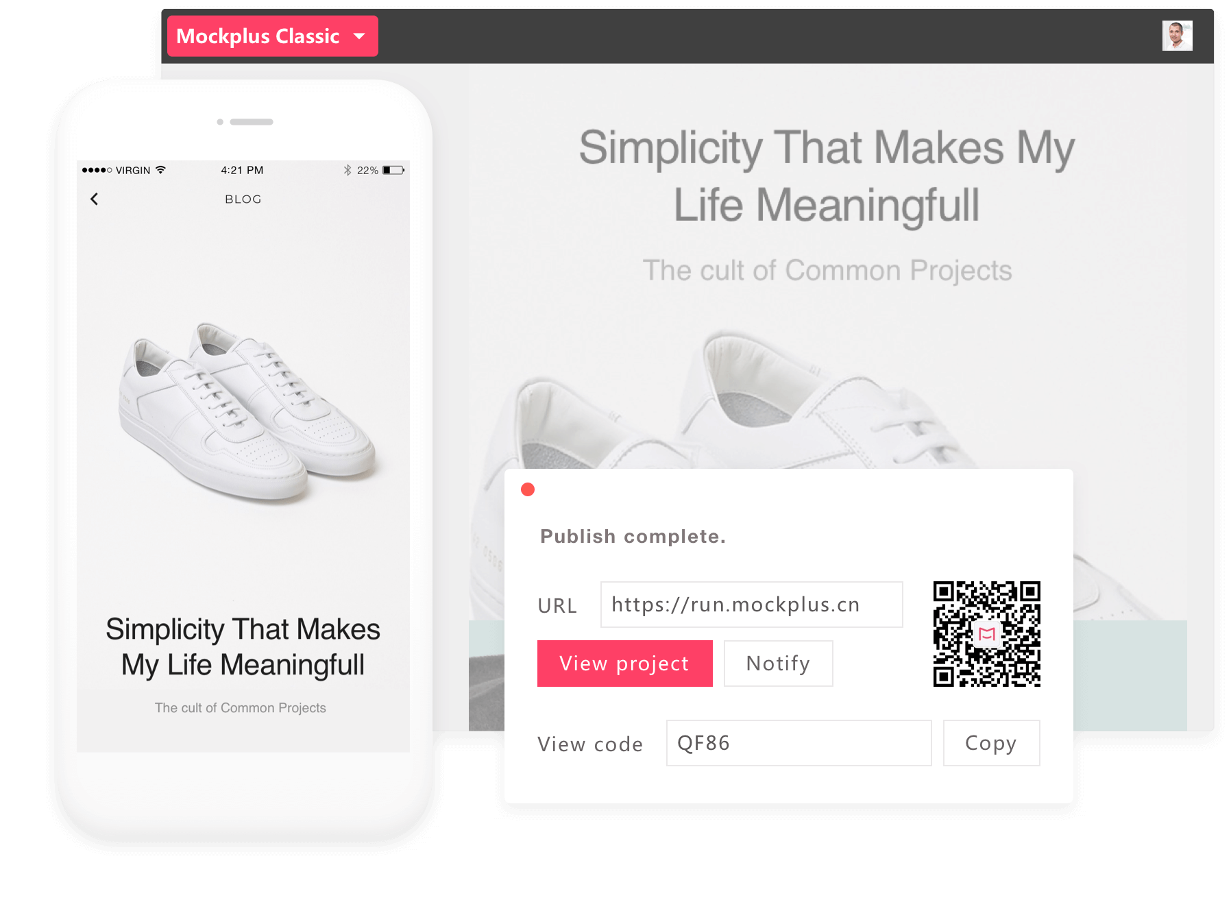 All the prototypes you create in Mockplus Classic are fully integrated with Cloud. Simplify design and development collaboration by allowing developers to inspect prototypes, check specs and get required design assets.